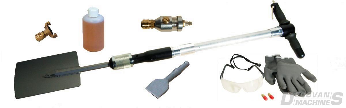 A powerful pneumatic chisel hammer for removal of bitumen, tiling or asbestos, landscape gardening, civil engineering.