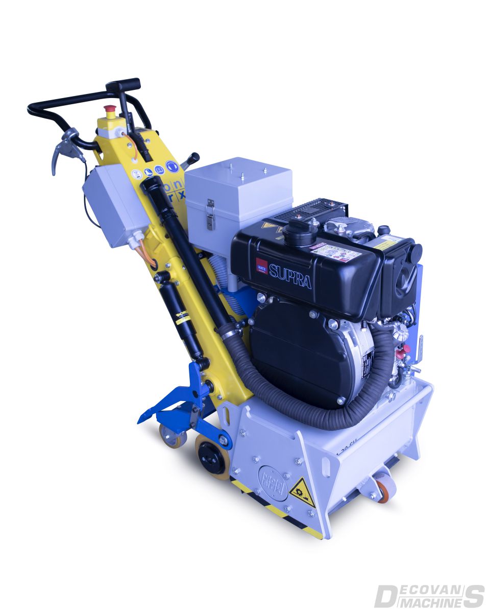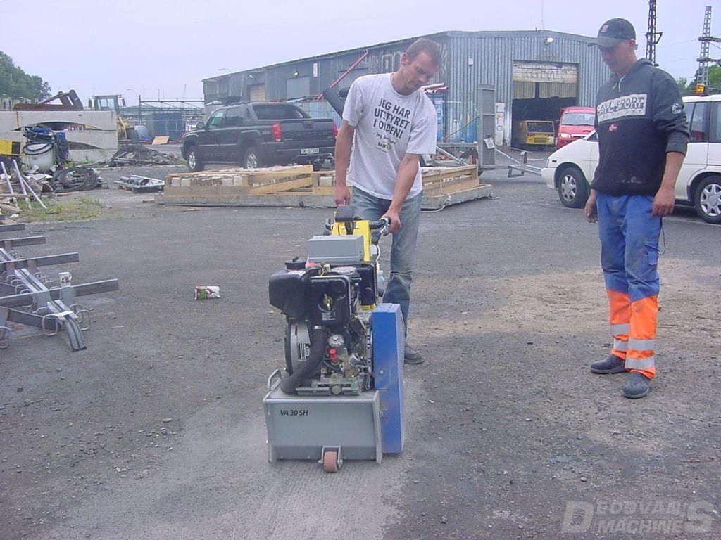 The VA 30 SH with hydraulic traction is the best choice when heavy duty cleaning and roughening work is due. This machine owes its agility to hydraulic traction and is easy to use. It is ideal for cleaning large areas of concrete, removing concrete slurry, dirt, plastic or roughening smooth surfaces. It is also used for paint removal and rubber lining removal at airports. Various cutters can be fitted to suit different applications. The VA 30 SH is equipped with a variable depth adjuster and a vibration absorption system.
