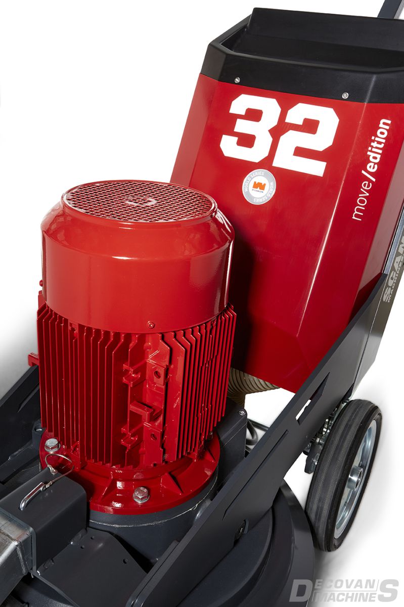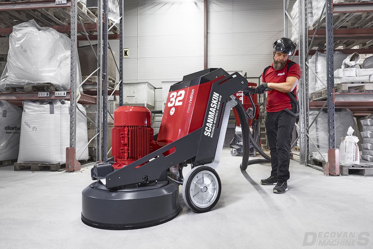 The Scanmaskin 32 World Series Move/edtion planetary grinder is perfect for the surface preparation of medium to large size floors, surface leveling, preparation before coating, removal of coating defects or adhesives. The WS-32 M/E is also ideal for use with industrial flooring applications, concrete preparation, and decorative flooring. The World Series 32 Move/edition planetary grinder is dust free when connected to the appropriate Pullman-Ermator dust collection system. To receive advice or training about concrete grinding and polishing or to find the best products for your surface preparation applications, contact Decovan Machines.