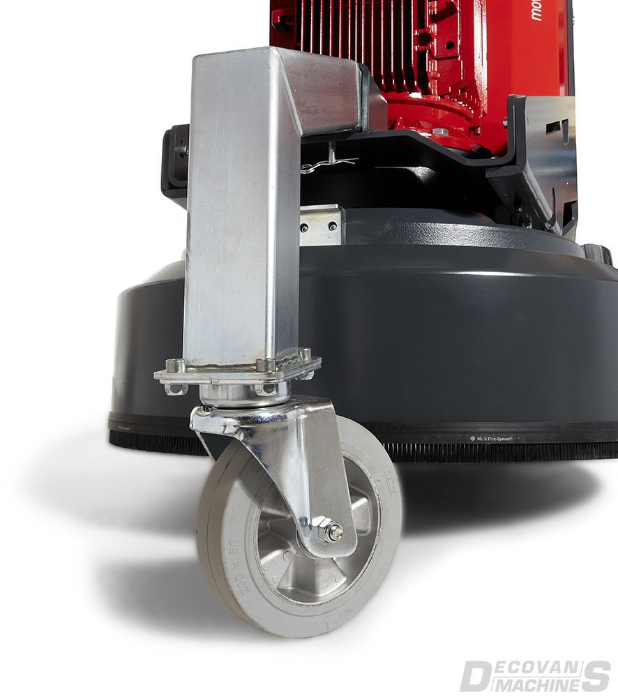 More height, less weight. The Scanmaskin World Series 32 Move/edition front wheel is a removable transport system designed to reduce head weight and improve mobility. Simply install the 25kg wheel into the socket for transport, then remove when grinding. In addition, this removable wheel system provides extra ground clearance for transporting over uneven surfaces.