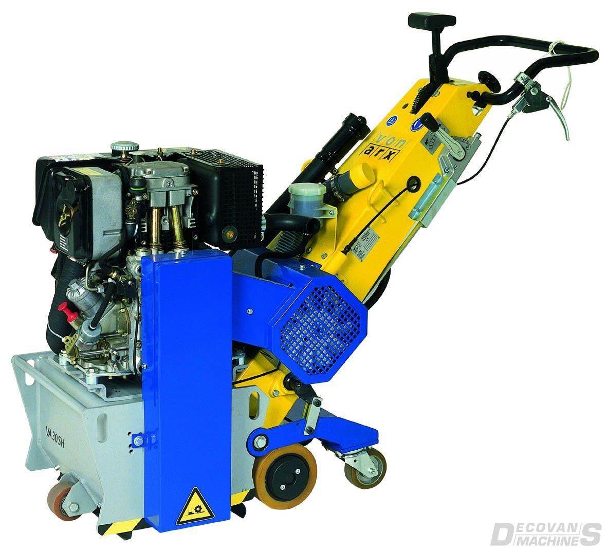 De VA 30 SH met hydraulische aandrijving is de beste keuze als het gaat om "heavy duty" schoonmaak- en opruwwerk. Deze machine is uiterst wendbaarheid en dankzij de hydraulische tractie makkelijk te gebruiken. Hij is ideaal voor het reinigen van grote oppervlakken van beton, verwijderen van betonsluier, vuil, kunstharsvloeren of opruwen van gladde oppervlakken. De VA-30-SH wordt ook gebruikt voor het verwijderen van coatings en thermoplast bekledingen op luchthavens. Verschillende lamellen kunnen worden aangebracht om voor elke toepassingen een oplossing te vinden. De VA 30 SH is uitgerust met een variabele diepte regelaar en een trillingsdempingsysteem.